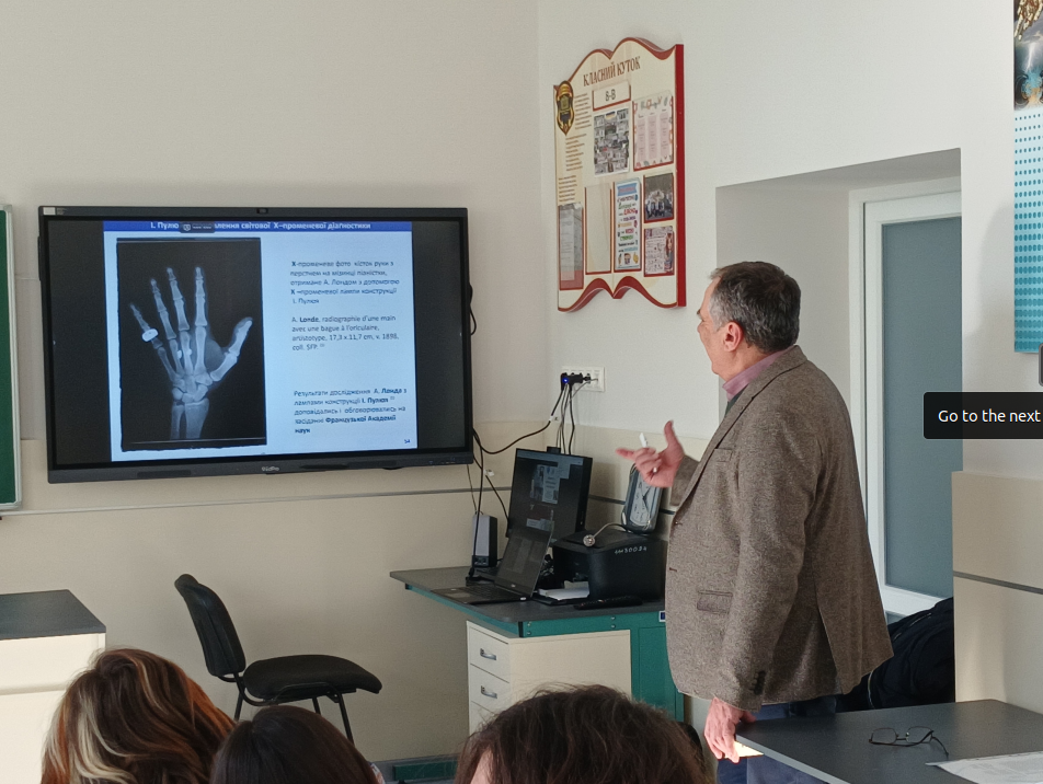 2 лютого 2026 року доцент кафедри фізики Юрій Скоренький та завідувач кафедри програмної інженерії професор Михайло Петрик завітали у Тернопільський академічний ліцей “Українська гімназія імені Івана Франка” та разом з ліцеїстами гортали сторінки драматичного, сповненого викликів, праці та звершень життя нашого видатного патрона. Зокрема, Михайло Петрик поділився найновішими знахідками, які йому вдалося відшукати у французьких наукових установах та музеях, Юрій Скоренький розповів про новинки, які пропонує віртуальним відвідувачам цифровий музей Івана Пулюя у ТНТУ (https://puluj-museum.tntu.edu.ua/).
