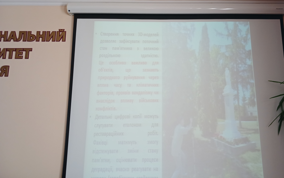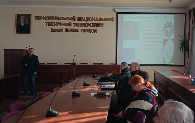 12 березня 2026 року завідувач лабораторії кіберфізисних систем Олександр Крамар виступив на засіданні Інженерно-технічної комісії Наукового товариства імені Шевченка, яке діє у ТНТУ, з доповіддю “Особливості створення 3D-моделей пам’яток монументального мистецтва Збаража для XR-застосунків”. Науковець представив результати роботи лабораторії в рамках проєкту “Збараж та околиці: віртуальний тур”, реалізовуваного спільно зі Збаразькою міською радою за підтримки Українського культурного фонду у 2025 році. Проект став важливим кроком до збереження історико-культурної спадщини нашого краю в новітніх інклюзивних цифрових форматах. З доповіді учасники засідання дізналися про особливості створення детальниих цифрових 3D-моделей пам’яток історії та культури, сучасний стан та перспективи технологій розширеної реальності. Лабораторії кіберфізичних систем ТНТУ продовжує робити внесок у діджиталізацію Тернопілля.